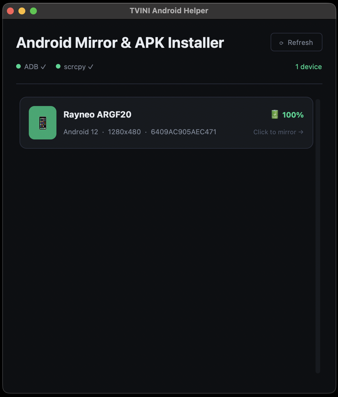 Launch Tvini Helper app and connect RayNeo X3 (or any other Android device) via USB cable.