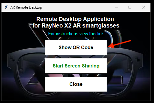 This will start QR code scanner, aim AR glasses camera at your phone and scan QR code.